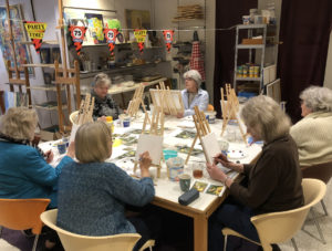 Ingrid Brune vierde haar 75 ste verjaardag met een workshop. Ingrid wilde haar vriendinnen laten meemaken waar zij iedere zaterdag  plezier aan beleeft in het Aanschuifatelier.